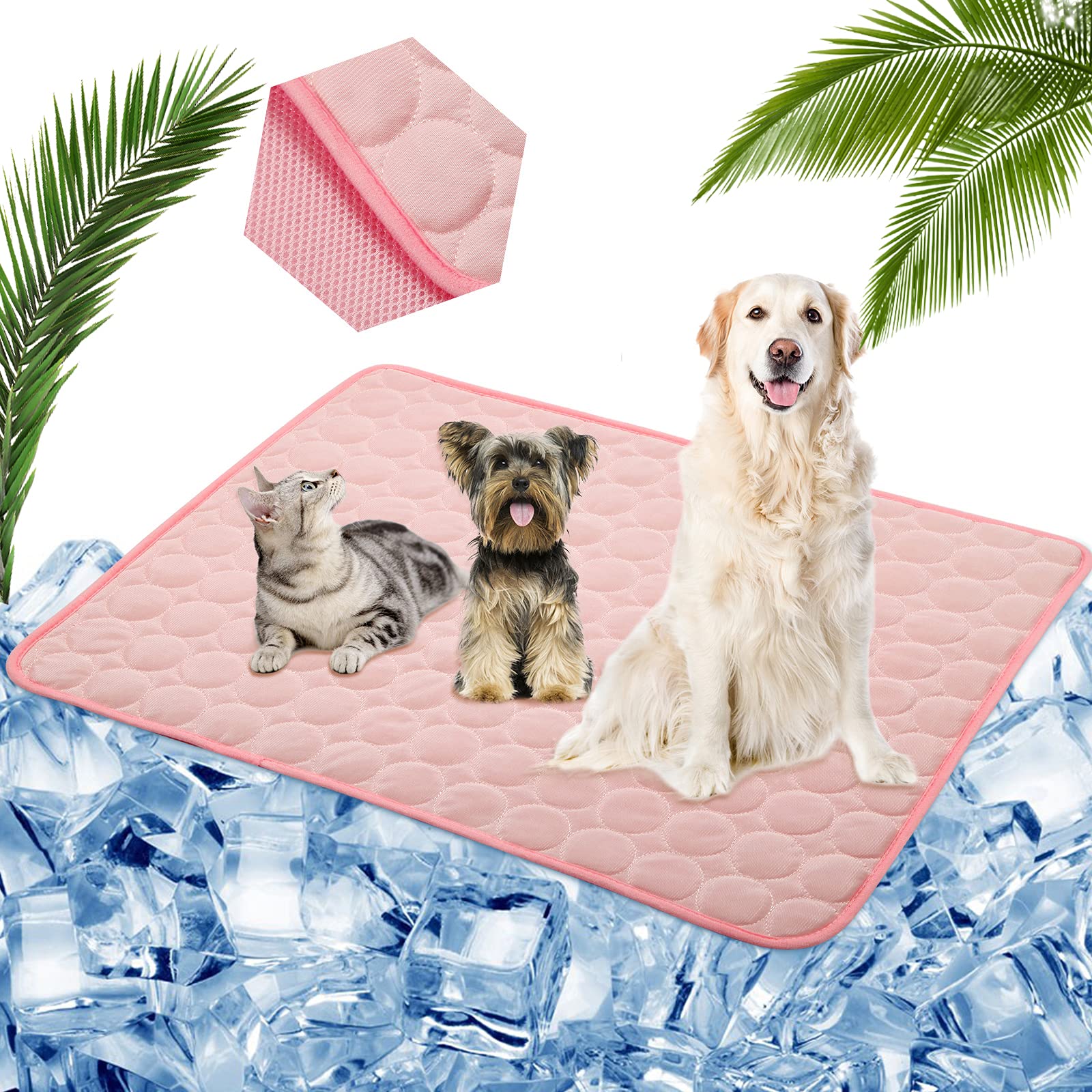 - ✿DESIGNED FOR LARGE, MEDIUM, SMALL DOGS/CATS: Measured 27.5 x 39.0 inches(for dogs/cats under 30lbs), 0.6LB/27.5 x 19.7 inches(for dogs under 80lbs),0.35LB. This reversible large-size cooling mat is specially designed for dogs weight between 10 to 80 lbs. It’s an ideal self cooling ice mat for pets in summer.