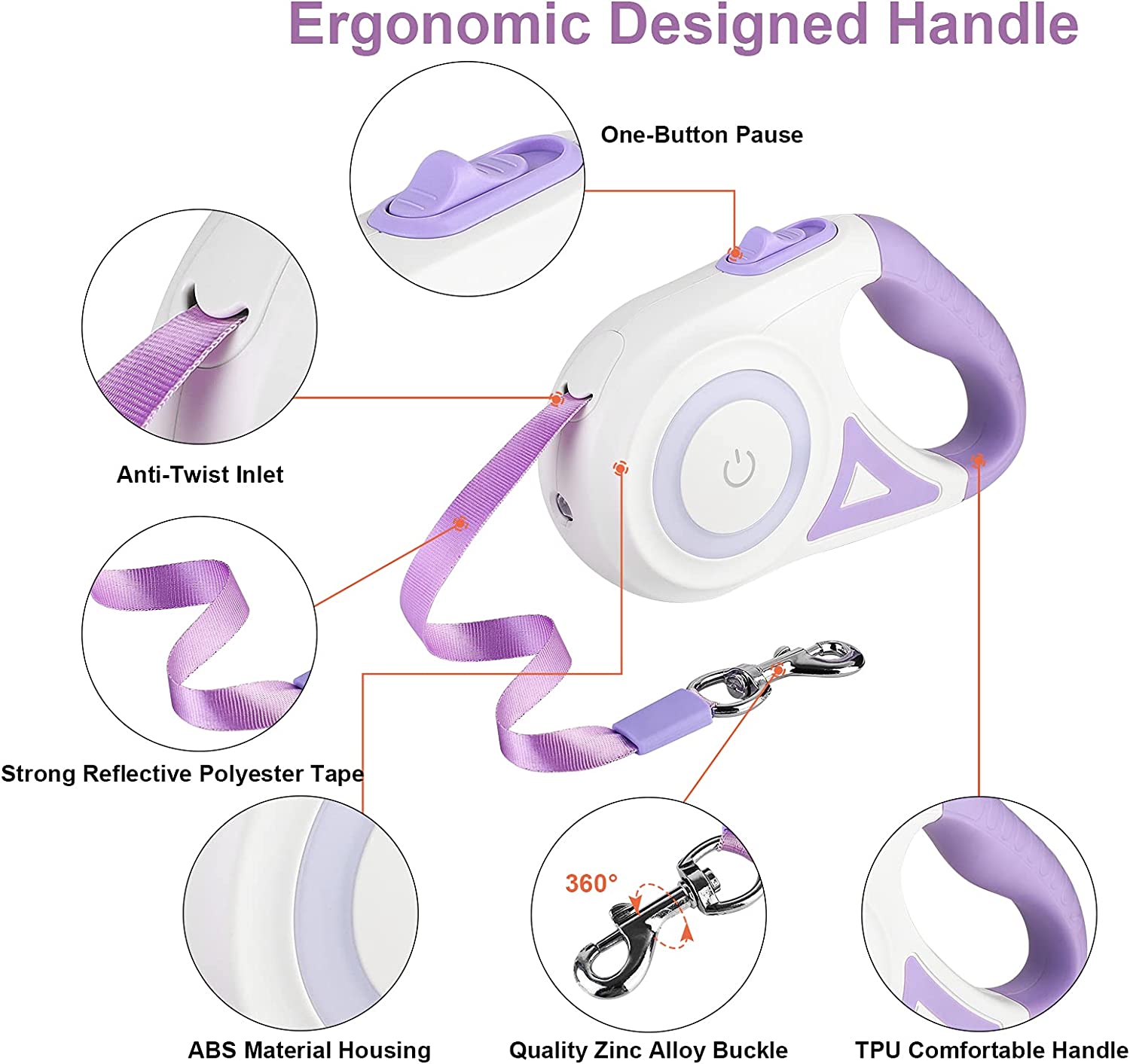Dog Leash Retractable with Light, 5M/16 Ft Extendable Dog Lead for Night Walking
